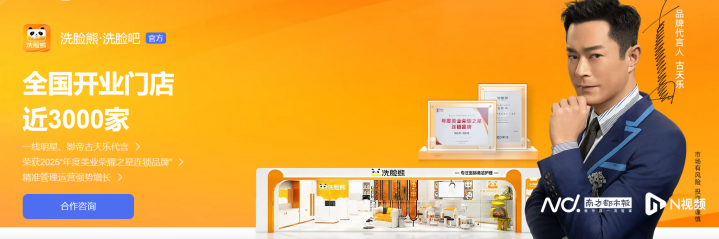 洗脸熊官网显示,其由古天乐代言,主打皮肤清洁,在全国拥有近3000家门店。根据12月31日洗脸熊官方小程序的数据,目前其拥有门店2381家。官方公众号显示,洗脸熊所做的“洗脸吧”业务为美容市场的新细分赛道,品牌宣称“不卖货,只洗脸”“男生女生都爱的洗脸品牌”。
