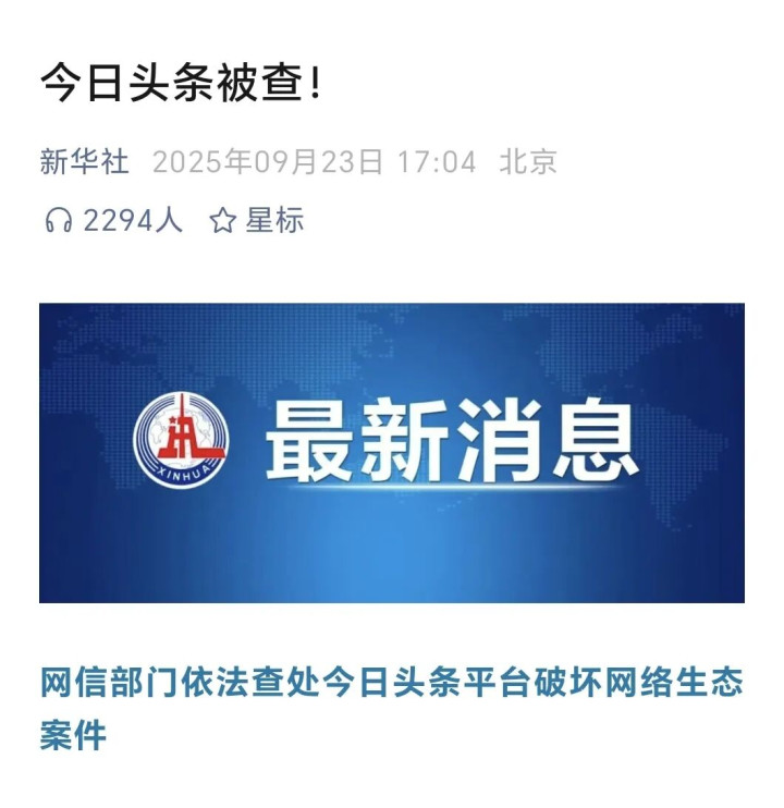 9月23日,国家网信办指导北京市网信办依法对今日头条采取约谈、责令限期改正、警告、从严处理责任人等措施,理由是“未能落实信息内容管理主体责任”。表面看,问题出在热搜榜单的内容失范;但往深处看,这是一次平台长期奉行的流量逻辑与内容治理责任之间的结构性错位。