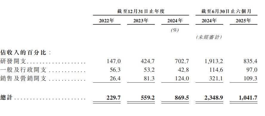 近年来,智谱AI持续加大研发投入。根据招股书,2022年至2024年,公司研发投入从8440万元增至21.95亿元,2025年上半年研发投入15.95亿元,研发开支占收入的比重为835.4%,累计研发投入约44.03亿元。
